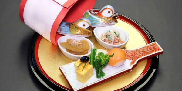 祝肴(新春) 家喜物(小串 海老真薯豊年 紅白うどん)