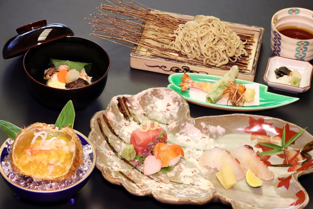 | 食 事 | 蕎麦 薬味 蕎麦出汁 車海老天婦羅 青唐 |