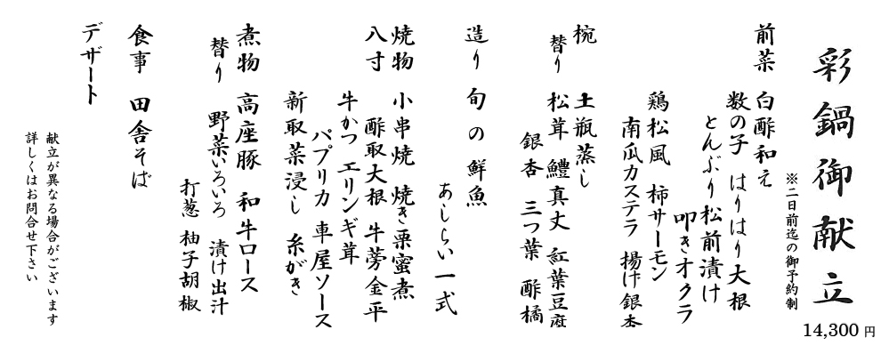 ※食材のアレルギーをお持ちの方は、ご予約時にお申し出下さい