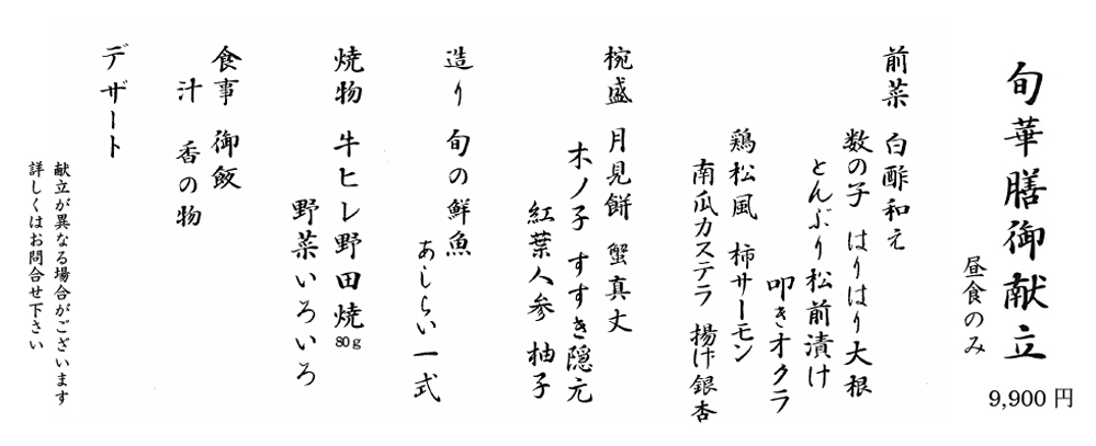 ※個室希望の方は、4名様以上、¥14,300(月会席)からご用意させて頂きます